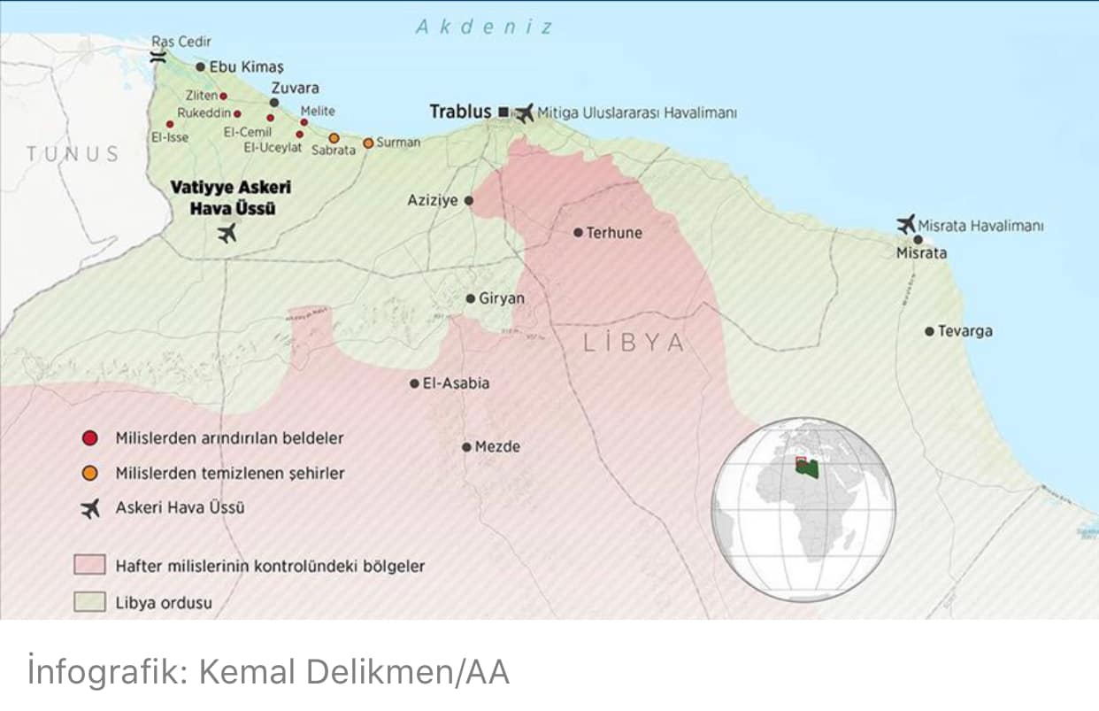 Libya’da “kime ait olduğu bilinmeyen” savaş uçakları stratejik öneme sahip Vatiyye Hava Üssü’nü bombaladı. Olay Türkiye’yi yakından ilgilendiriyor. Bilindiği üzere Türkiye bir süre önce ele geçirilen bu üssün kendisine verilmesini istiyor. (Ayrıca Sirte’de de “Mavi Vatan” kapsamında bir de...