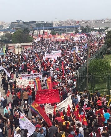 Bu yıl 1 Mayıs’ın İstanbul’daki merkezi Bakırköy Halk Pazarıydı. DİSK, KESK, TTB, TMMOB VE 1 Mayıs birleşenleri tarafından organize edilen mitinge 3 koldan girildi. İncirli Dikilitaş’da toplanan birinci kolun başını KESK, TMMOB çekiyordu. HDP, Haziran, BDSP, ESP,DP, SODAP , Kaldıraç, SYKP ...