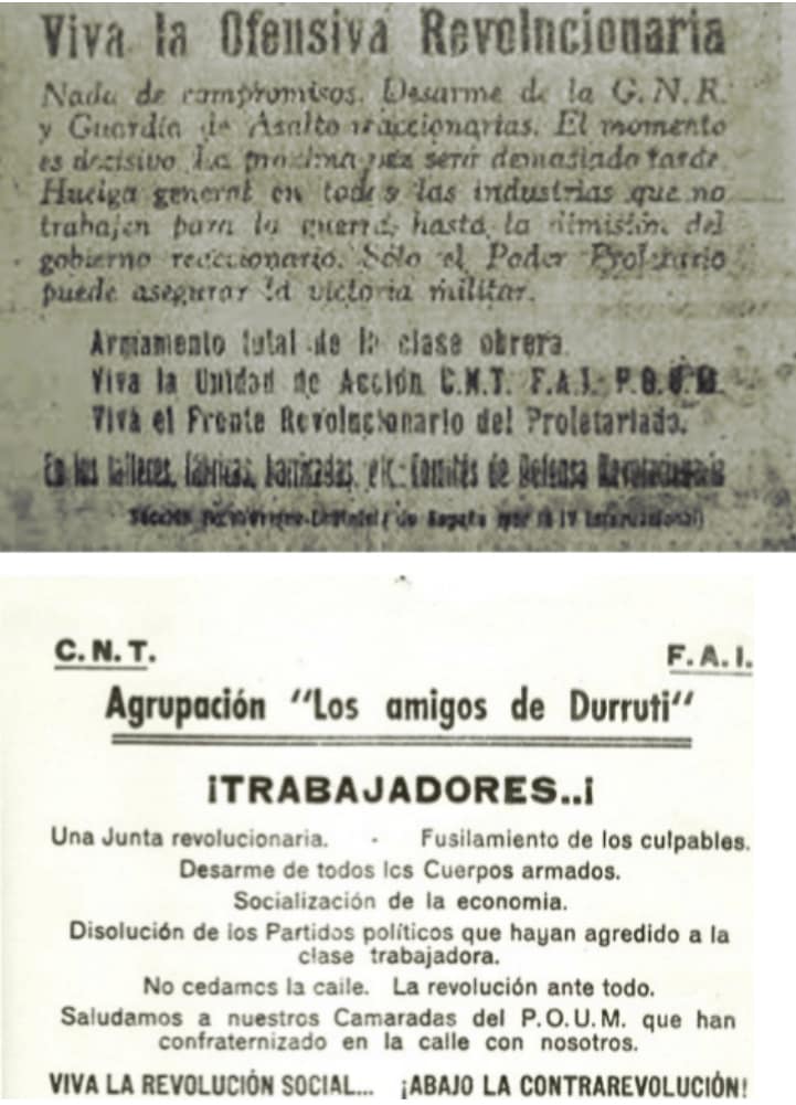 Ertesi ay, cumhuriyetçi burjuva-Stalinist hükümet ile devrimci işçi güçleri arasındaki çatışmalar “Mayıs olayları” başladı. Hemen, Barselona, Julio Cid’in bir kez daha savaştığı barikatlarla tekrar doldu. Cid, yoldaşları ile birlikte şunları söyleyen SBLE broşürünü dağıttı: “Yaşasın devrimci saldırı”