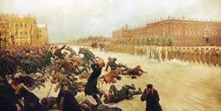 Ocak 1905’te Petersburg işçileri silahsız olarak Çarın Kışlık Sarayına yürürler. Başlarında işçileri örgütlemesi için Çarın gizli polisi tarafından tutulan Papaz Gapon vardır. Ellerinde haçlar ve bayraklarla yürümelerine rağmen Çarın askerler taleplerini dinlemez ve kitleye ateş eder. Bu masum gösterinin katliamla sonuçlanması 1905 Devriminin ateşini yakar.