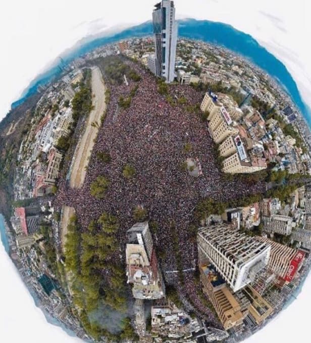 Bugün milyonlarca kişi harekete geçti. Santiago, 30 yıldan fazla bir süredir devam eden demokrasi döneminin en büyük gösterisini yaşadı – gerçekte daha fazlası olmasına rağmen, belediye yetkililerine göre 1,2 milyon kişi. Tüm Şili kuzeyden güneye aynıydı: sokaklarda gösteri yapan büyük insan dalgaları. Tüm ülke, yüzlerce sosyal kurumun katıldığı “Şili’deki en büyük yürüyüş” den bahsediyor.