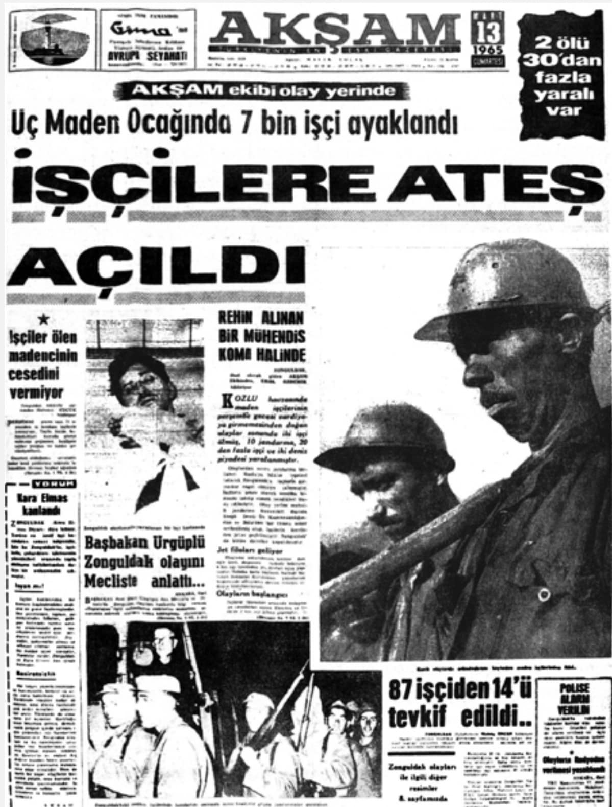İşçiler Kozlu’ya indiler. Zonguldak’ın bütün giriş ve çıkışlarını kapadılar. Resmi daireler kapatıldı. Çevre illerden takviye birlikler getirildi. İşçilerin üzerinden jetler uçuruldu. Jet uçakları bildiri atıyorlardı… 58 yıl önce bugün, Türkiye emek tarihi içindeki en büyük işçi direnişler...